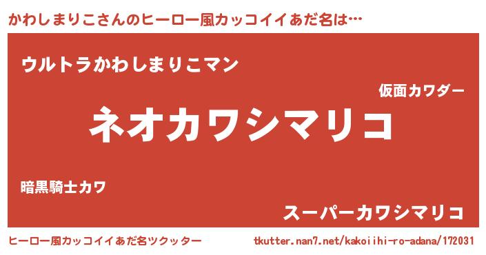 | 胡散臭い通販商品みたいなあだ名 | 『来世でも幸せになれる水素水…その名も「かわしまりこ」』 |