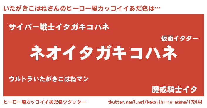 | 男性向けラノベタイトル風あだ名 | 『いたがきこはねに滅ぼされるだけの簡単なお仕事です』 |