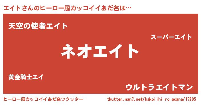 | 男性向けラノベタイトル風あだ名 | 『エイトという概念が存在しない退屈な世界 』 |