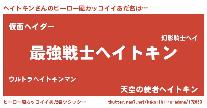 | 男性向けラノベタイトル風あだ名 | 『うちのヘイトキンが世界を掌握している!』 |