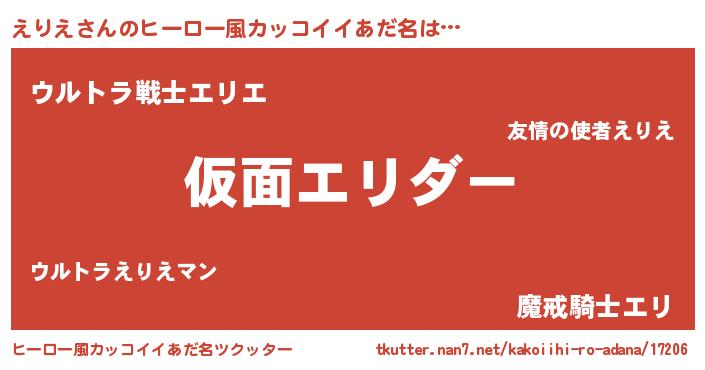 | 意味不明あだ名 | 『住所不定無職えりえ(39歳)』『自称えりえ』 |