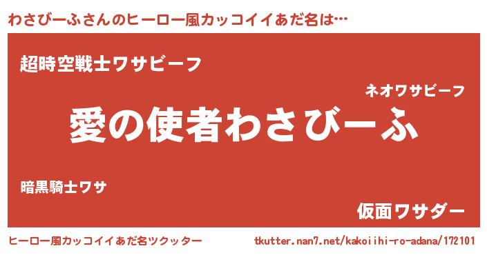 | 女子向けラノベタイトル風あだ名 | 『わさびーふ恋絵巻』 |