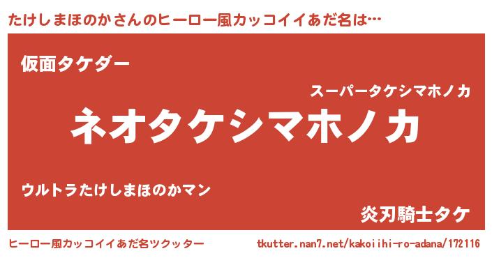 | 伝説のあだ名 | 『古より伝わる勇者たけしまほのか』 |