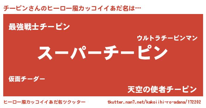 | 男性向けラノベタイトル風あだ名 | 『チーピンの憂鬱』 |