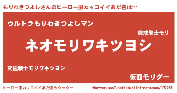 | ヘコむあだ名 | 『もりわきつよし(苦笑)』『酢こんぶ』 |