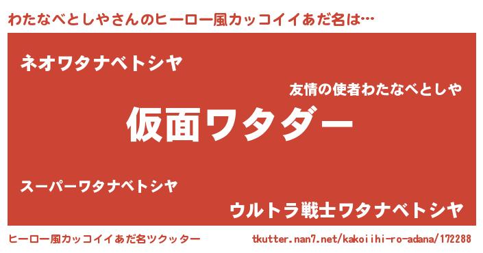 | 男性向けラノベタイトル風あだ名 | 『転生したらわたなべとしやだった件』 |