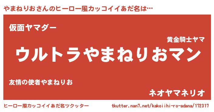 | 男性向けラノベタイトル風あだ名 | 『やまねりおに滅ぼされるだけの簡単なお仕事です』 |