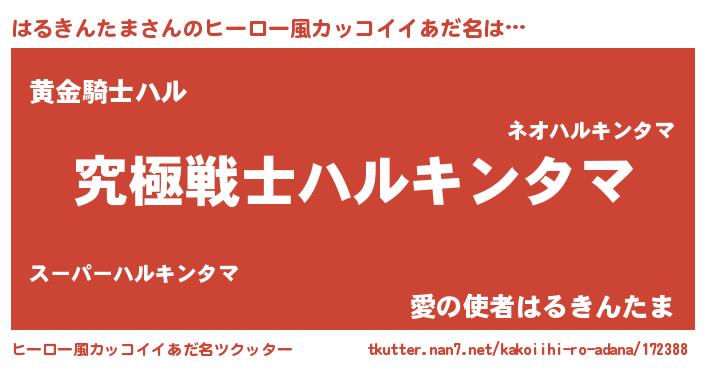 | 女子向けラノベタイトル風あだ名 | 『はるきんたまの玉の輿計画!』 |