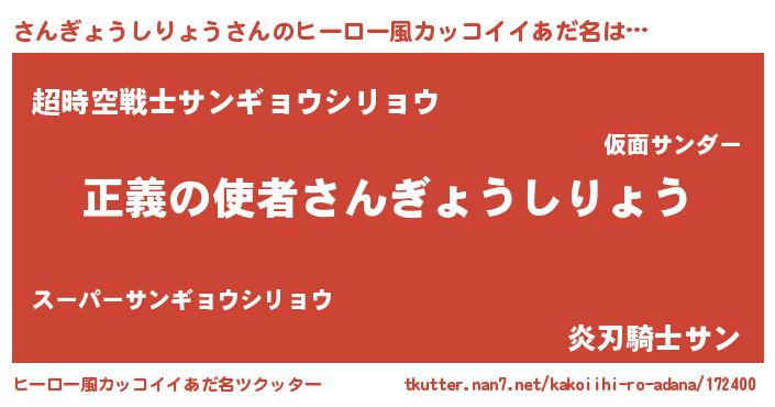 | 料理風あだ名 | 『さんぎょうしりょうごはん』 |