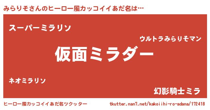 | 意味不明あだ名 | 『住所不定無職みらりそ(7歳)』 |