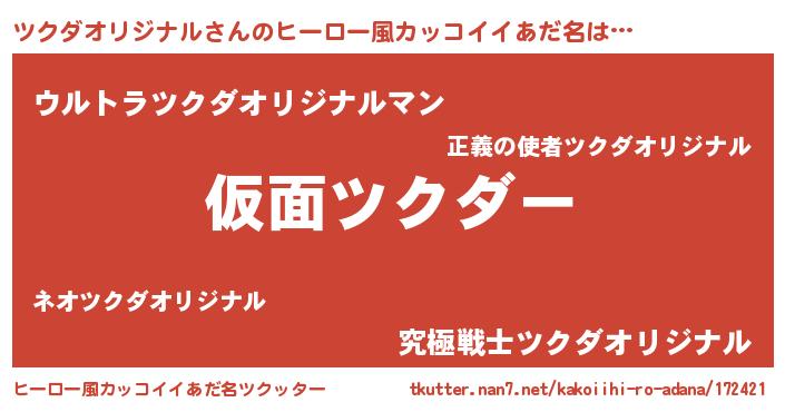 | 男性向けラノベタイトル風あだ名 | 『この素晴らしい世界にツクダオリジナルを!』 |