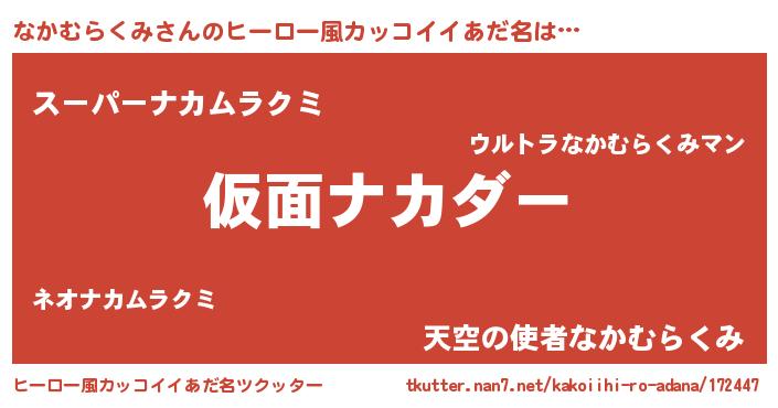 | 男性向けラノベタイトル風あだ名 | 『なかむらくみ~年齢イコール彼女いない歴の魔法使い~』 |