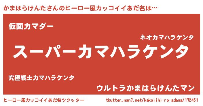 | 男性向けラノベタイトル風あだ名 | 『うちのかまはらけんたが世界を掌握している!』 |