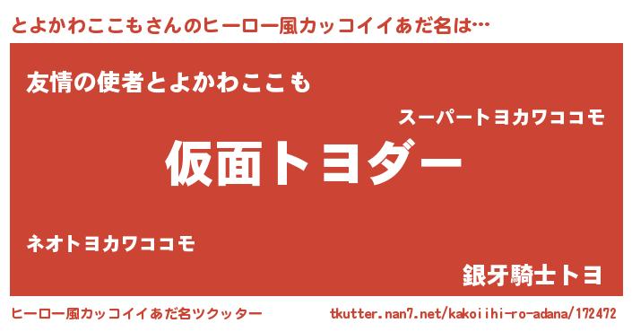 | 意味不明あだ名 | 『住所不定無職とよかわここも(47歳)』 |