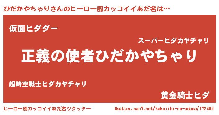 | 男性向けラノベタイトル風あだ名 | 『ヒダカヤチャリスレイヤー』 |