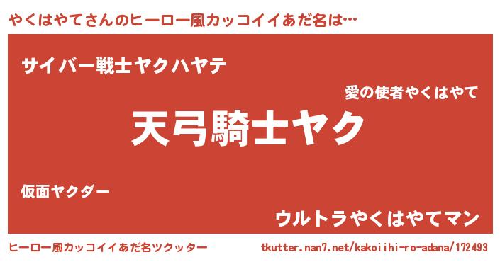 | 胡散臭い通販商品みたいなあだ名 | 『全米が絶賛したサプリメント…その名も「やくはやて」』 |