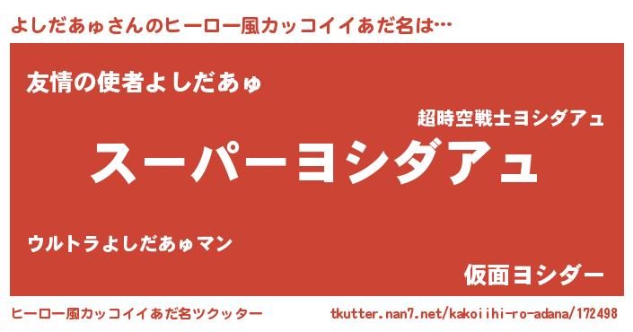 | 意味不明あだ名 | 『ペロリンよしだあゅ』『自称よしだあゅ』 |