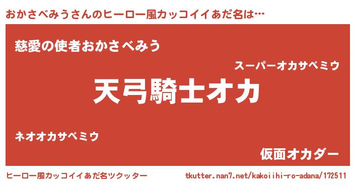 | 男性向けラノベタイトル風あだ名 | 『おかさべみうの嫁は女の子じゃないと思った?』 |
