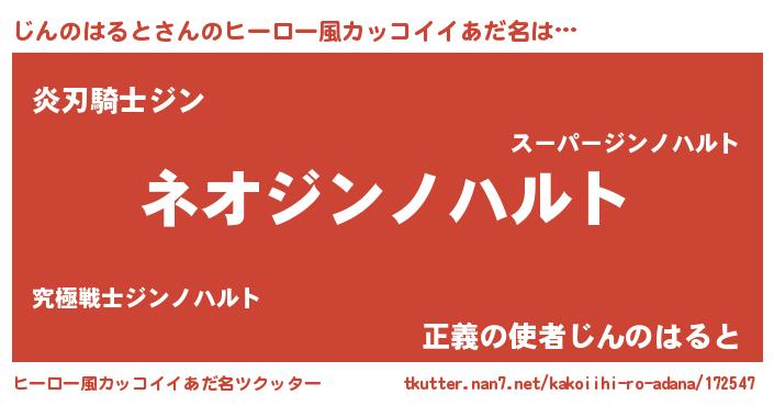| 男性向けラノベタイトル風あだ名 | 『じんのはるとという概念が存在しない退屈な世界 』 |
