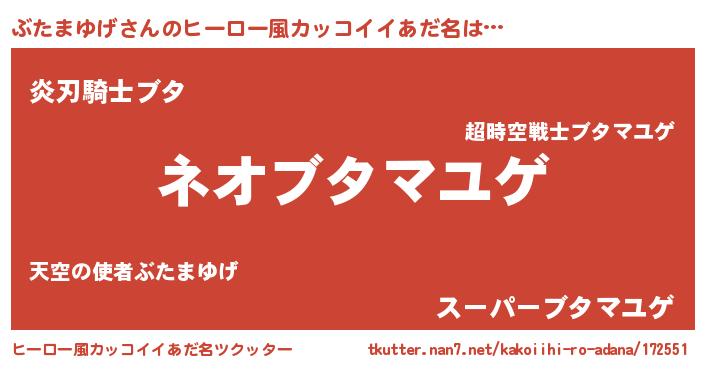 | 男性向けラノベタイトル風あだ名 | 『ぶたまゆげという概念が存在しない退屈な世界 』 |