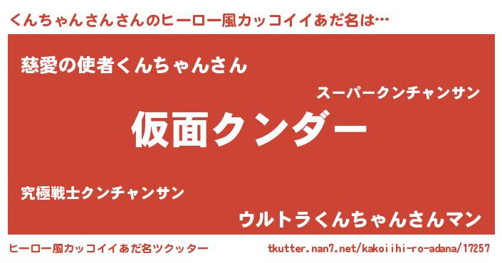 | 男性向けラノベタイトル風あだ名 | 『この素晴らしい世界にくんちゃんさんを!』 |