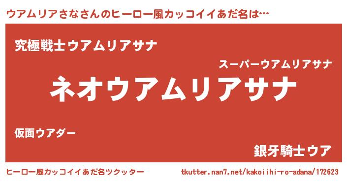 ウアムリアさなさんのヒーロー風カッコイイあだ名をツクッター!