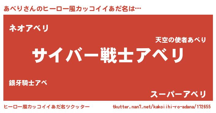 | 男性向けラノベタイトル風あだ名 | 『Re:あべりから始める異世界生活』 |