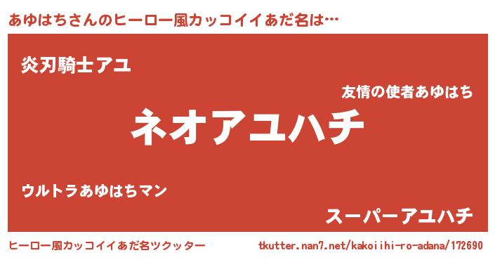 | ヘコむあだ名 | 『あゆはち(小並感)』『あゆぷりん』 |