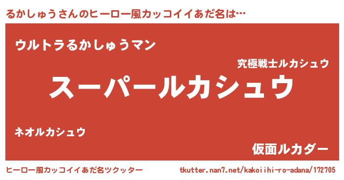| 胡散臭い通販商品みたいなあだ名 | 『億万長者になれる霊験あらたかなお札…その名も「るかしゅう」』 |