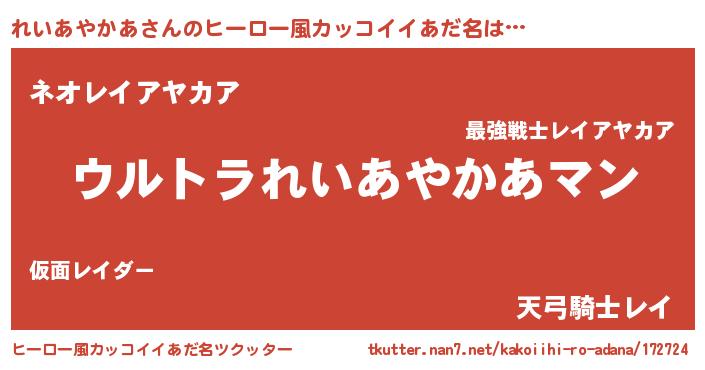 | ヘコむあだ名 | 『酢こんぶ』『れいあやかあ(震え声)』 |