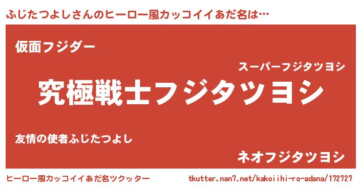 | 男性向けラノベタイトル風あだ名 | 『Re:ふじたつよしから始める異世界生活』 |