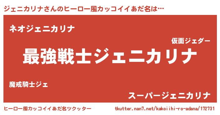 | 女子向けラノベタイトル風あだ名 | 『ジェニカリナストレイドッグス』 |