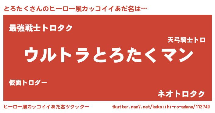| 男性向けラノベタイトル風あだ名 | 『うちの娘の為ならば、俺はもしかしたらとろたくも倒せるかもしれない。』 |