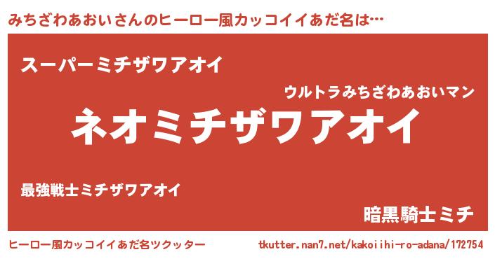 | 胡散臭い通販商品みたいなあだ名 | 『絶対に幸福をもたらす水素水…その名も「みちざわあおい」』 |