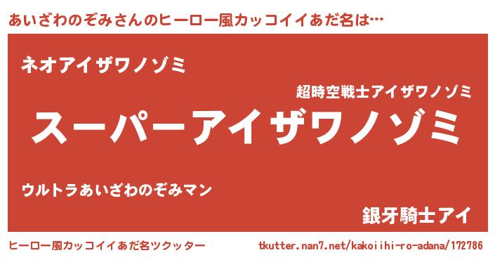 | 男性向けラノベタイトル風あだ名 | 『あいざわのぞみの憂鬱』 |