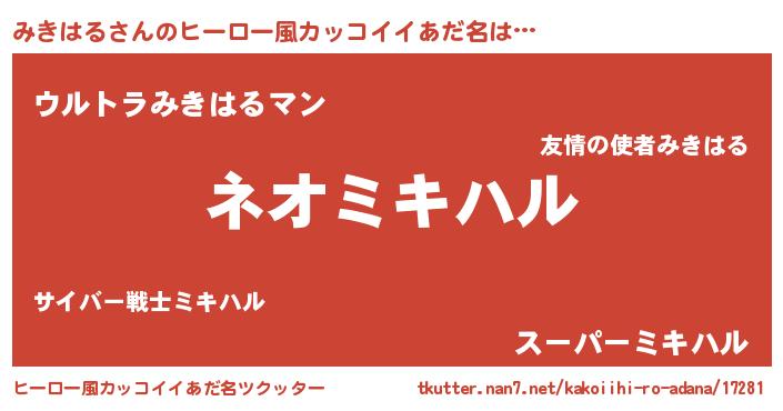 | 男性向けラノベタイトル風あだ名 | 『みきはるという概念が存在しない退屈な世界 』 |