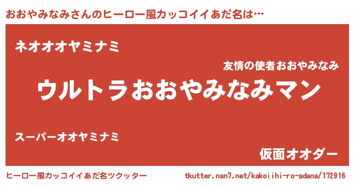 | 欧米人風あだ名 | 『おおやみなみ・ステッグマイヤー』 |