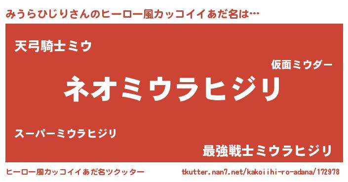 | ポケモン風あだ名 | 『ゼニミウ』『ヒミウラヒジリ』 |