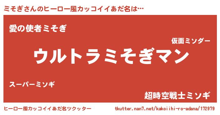 | 伝説のあだ名 | 『秘められし忍者ミそぎ』 |