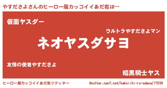 | 男性向けラノベタイトル風あだ名 | 『やすださよという概念が存在しない退屈な世界 』 |