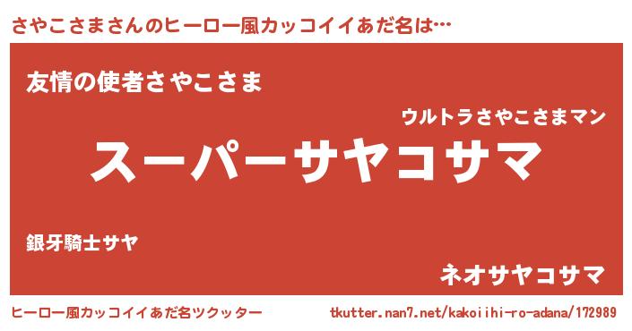 男性向けラノベタイトル風あだ名 | 『さやこさまの憂鬱』『緋弾のサヤコサマ』 |