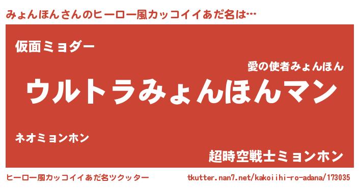 | 男性向けラノベタイトル風あだ名 | 『みょんほん~年齢イコール彼女いない歴の魔法使い~』 |