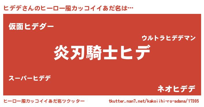 | 男性向けラノベタイトル風あだ名 | 『ヒデデの嫁は女の子じゃないと思った?』 |