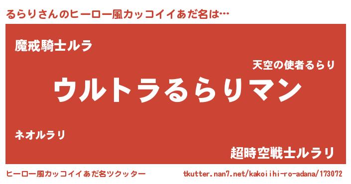 | ポケモン風あだ名 | 『メロルッラ』『ルラリダネ』 |