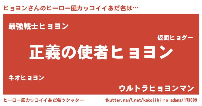 | 男性向けラノベタイトル風あだ名 | 『おまえをオタクにしてやるから、俺をヒョヨンにしてくれ! 』 |