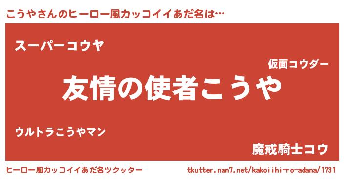 | 男性向けラノベタイトル風あだ名 | 『おまえをオタクにしてやるから、俺をこうやにしてくれ! 』 |
