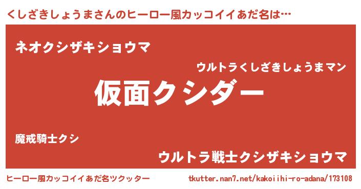 | 意味不明あだ名 | 『住所不定無職くしざきしょうま(71歳)』 |