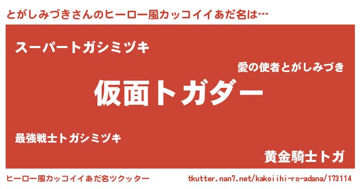 | 意味不明あだ名 | 『住所不定無職とがしみづき(7歳)』 |