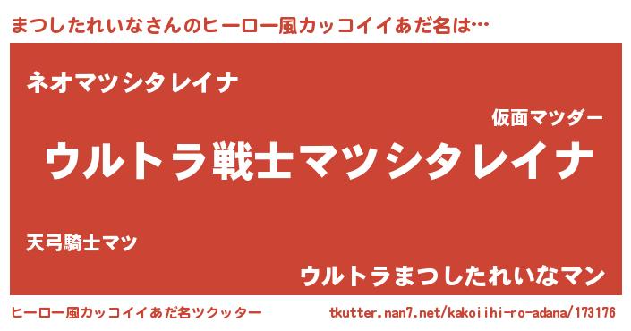 | 男性向けラノベタイトル風あだ名 | 『マツシタレイナスレイヤー』 |