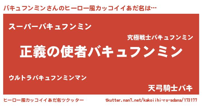| 男性向けラノベタイトル風あだ名 | 『緋弾のバキュフンミン』 |